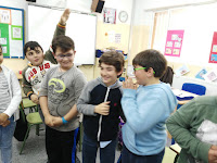 Me he levantado con una ilusión de aprender más que ayer. Me vestí desayuné un buen y delicioso colacao y una gran tostada. Al ir al colegio me encontré con :Alfredo, Alex, Daniel,y Álvaro,aunque como casi siempre llegamos un minuto más tarde .Hoy, a primera hora, tocó un poco de Lengua. Leímos el grano de Granada, después la asignatura que tocaba, no es de mis preferidas. En Inglés corregimos la ficha . Luego pasamos a unas actividades de las que más me gustan, Matemáticas. ¡Uy que bien me lo pasé! El que aparece abajo con el transpoortador soy yo. Bueno llegó el recreo. Hoy parece que todo el mundo estaba loco. Las niñas traian a los niños para juntarlos no sé lo que pasó. Terminó el descanso y volvimos a clase, copiamos la tarea y...llego el momento que todos estabamos esperando: la hora de jugar al teléfono. Se trata de que uno le dice al de al lado una frase y ese al otro así hasta que el último dice su frase y el primero la suya y a ver si tienen algo en común. De vuelta Darío siempre se viene conmigo. Comí me arreglé por que por la tarde...tenía un partido de fútbol contra el Punta Umbría. Perdímos 6-4 y yo metí un golazo por la escuadra. Fue íncreíble. Cano, mi portero, se quedó en mi casa porque no le recogierón y se tuvo que quedar conmigo. Hice los deberes y después a escribir, que es lo que estoy haciendo.Ahora a cenar adíos a todos.